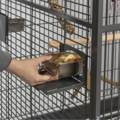 Cage en métal de couleur blanche.