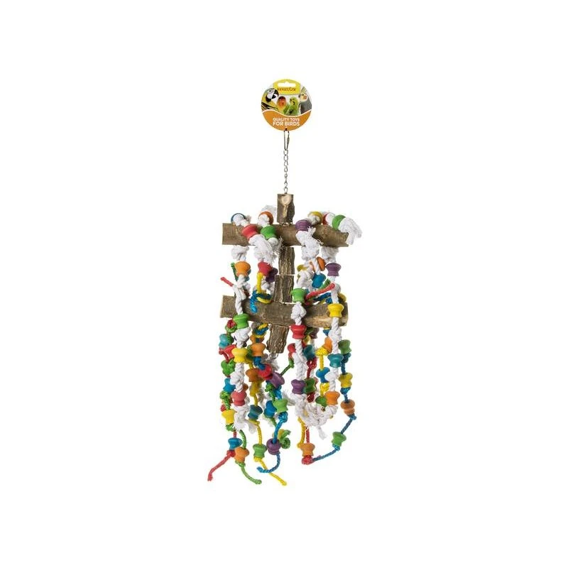 Jouet Perche En Bois Double Avec Corde à Noeuds