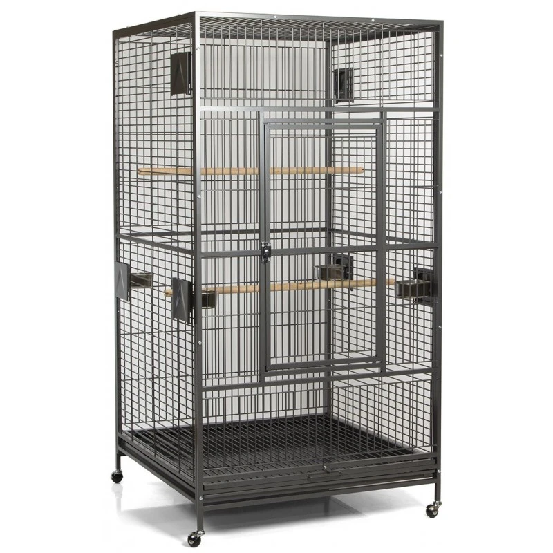 Montana Cages – Le petit frère de l’Arkansas II Bien entendu, la livraison comprend des bols en acier inoxydable, un perchoir, une grille à fumier amovible et des pieds à roulettes stables. L’Arkansas I possède également quatre mangeoires extérieures et une « porte d’élevage » pour fixer un incubateur !