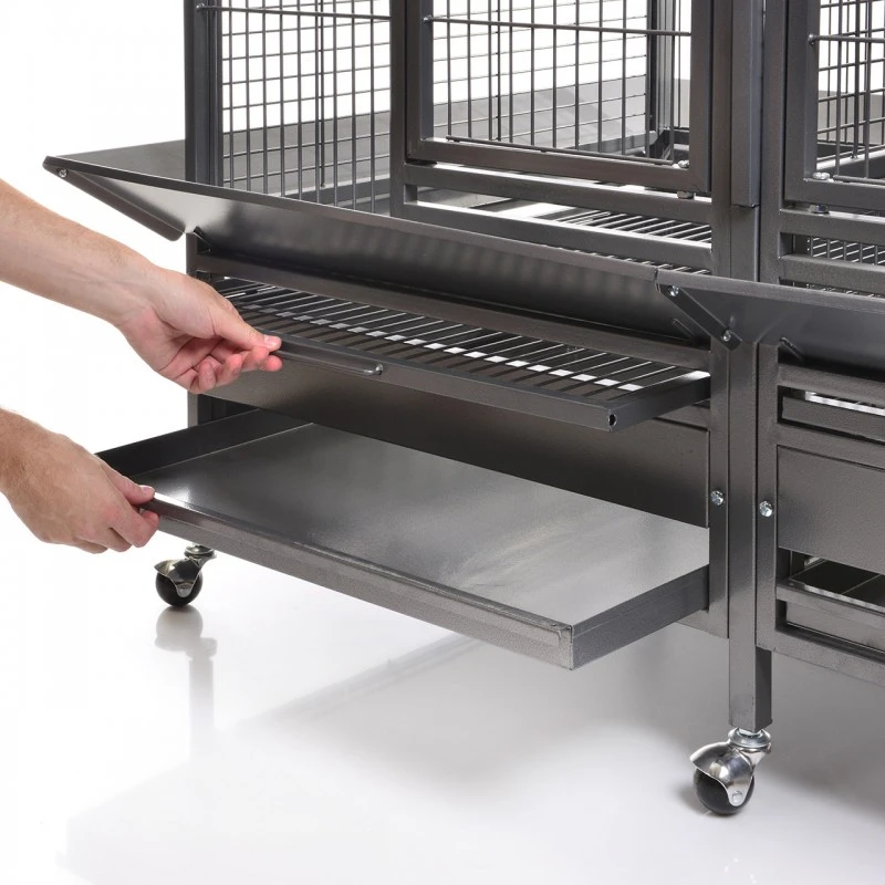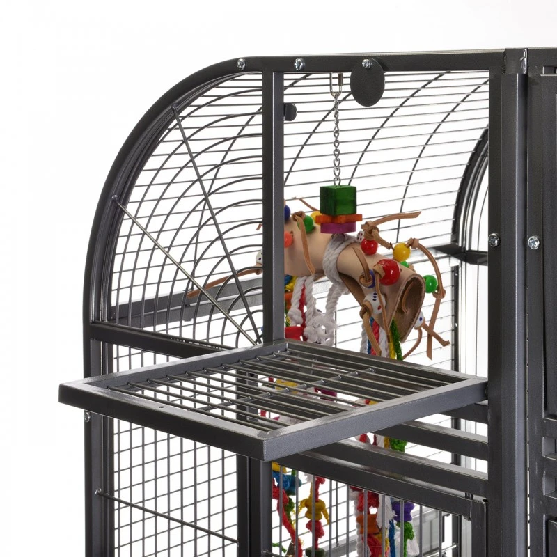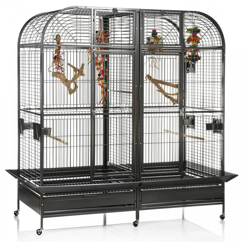Montana Cages – Le modèle Palace est l’une des plus grandes cages à perroquets au monde. Le point fort de ce modèle, en plus du dispositif de séparation, est un volet d’approche qui se fixe au-dessus de la porte. Cette volière dispose d’une cloison, d’un abattant pour fixer un nichoir, de quatre portes d’habillage extérieur avec coques en inox et de deux portes spacieuses. Le Palace est recouvert d’un revêtement en poudre AVILON et est disponible dans les couleurs platine et antique. Le revêtement en poudre AVILON® est cuit à 220°C et garantit non toxique.
