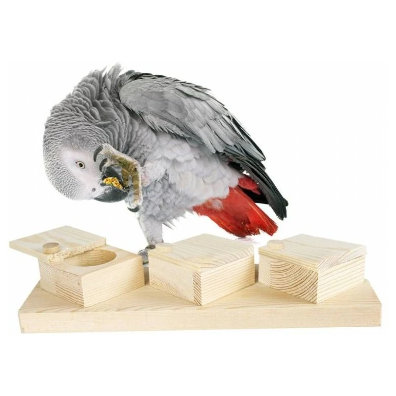 Vous pouvez cacher de petites récompenses telles que des fruits secs et des graines sous les portes pour stimuler un comportement naturel de recherche de nourriture. La recherche de nourriture est la recherche et la découverte de nourriture, ce que font les perroquets, les rongeurs et les lapins dans la nature pendant la majeure partie de la journée.